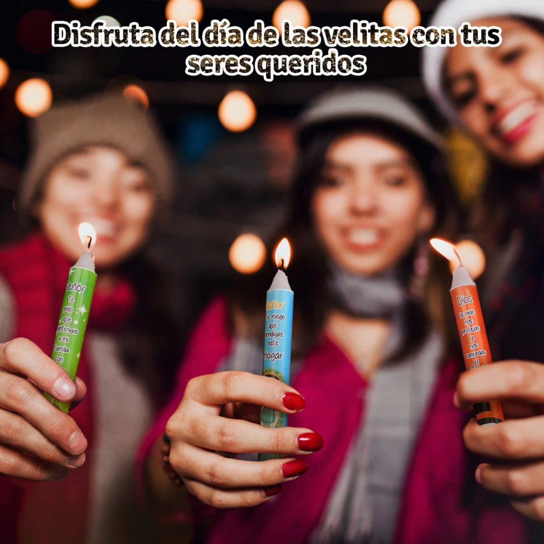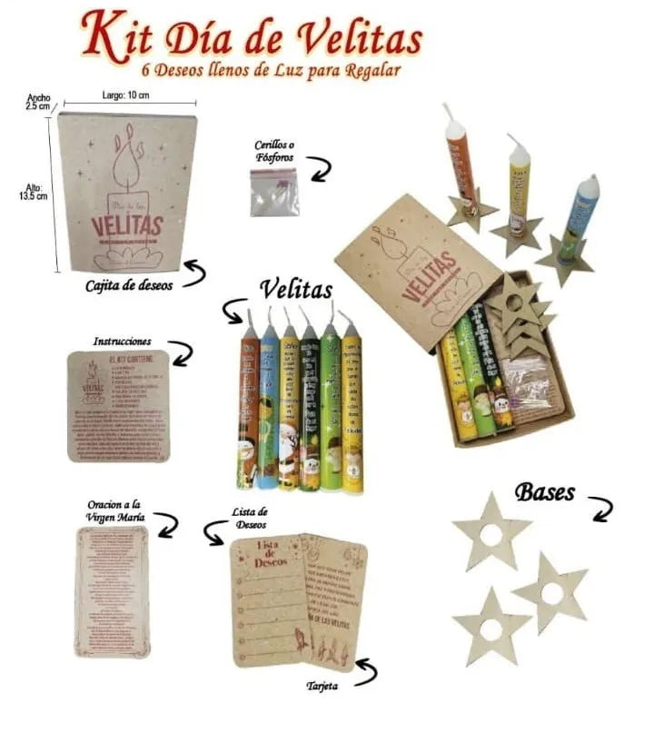 El ritual incluye 6 velitas tradicionales de colores, cada una con su base en forma de estrella.